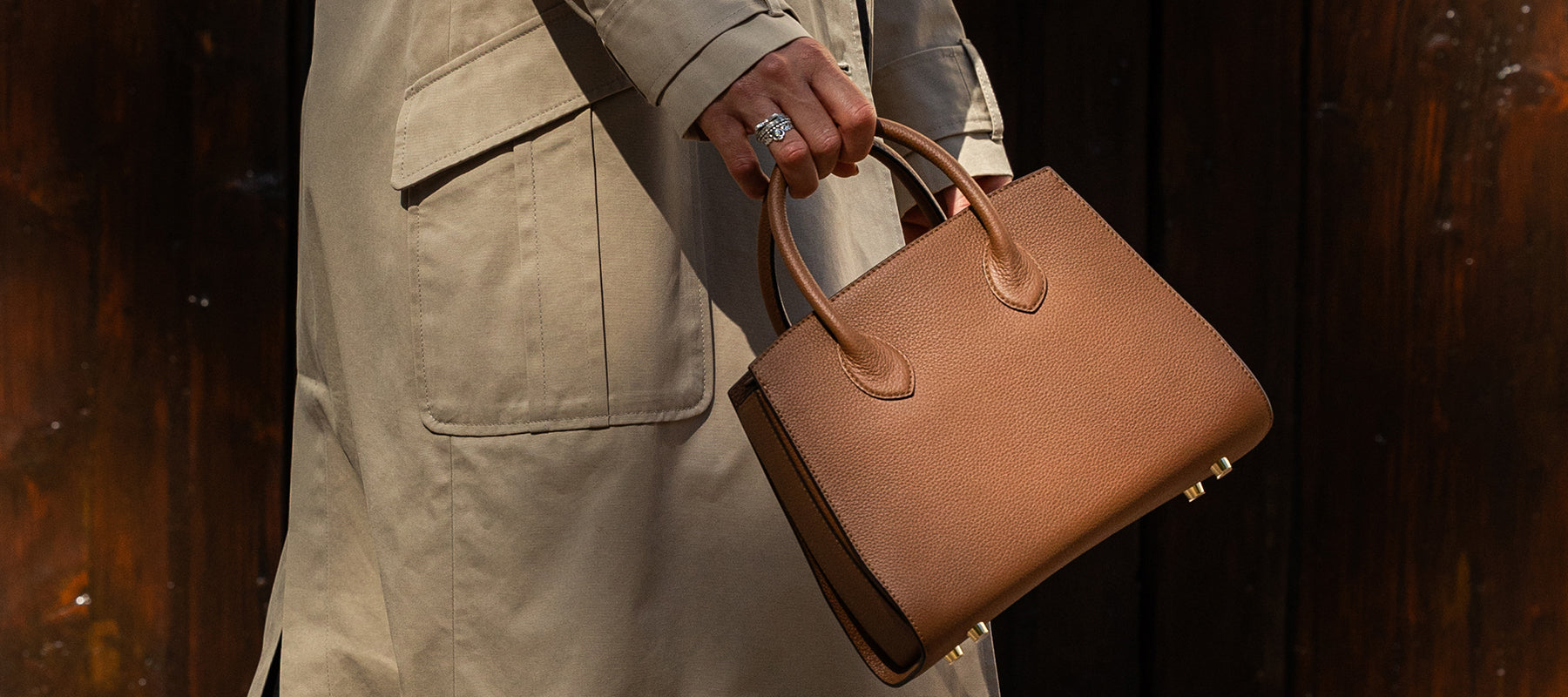 安定した人気を誇り、アイコンとも言える真鍮製のオリジナル尾錠が特徴のフラップトート。