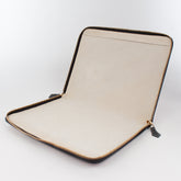 ダブルジップで開閉できるので、収納したままiPadやタブレットを充電することができます。内部にはiPadを挟みこみ、立たせるための縁取りが施されています。通常のクラッチバッグとしても使えるので、財布や鍵、携帯などの収納に丁度良く、バッグインバッグとしても重宝します。