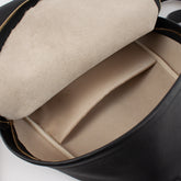 豚革スウェード: 手触りはソフトで滑らか。高級感をより高めるとともに、表革との共縫い製法によりバッグの型崩れを防ぎます。 |