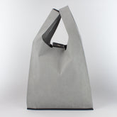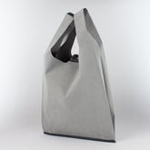 レジ袋をモチーフに手軽さを追求し、この上ないシンプルなスタイルの中に繊細なディティールを取り込みました。高級感と暖かみがあり、なおかつ堅牢な素材であるアルカンターラがデザインを引き立てます。