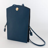 ユニークな2室構造で見た目よりも内容量があり、中央のポケットにはカードなどが収納可能です。上品な細さの革製の紐はお好きな長さに調節可能で、軽く結べば手提げバッグとしてもご使用いただけます。