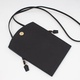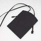 ユニークな2室構造で見た目よりも内容量があり、中央のポケットにはカードなどが収納可能です。上品な細さの革製の紐はお好きな長さに調節可能で、軽く結べば手提げバッグとしてもご使用いただけます。