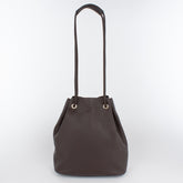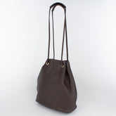 柔らかく、使いやすいサイズの巾着バッグです。前後2本出しのストラップを片方に引っ張り、肩掛けや斜めがけバッグにもなります。