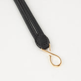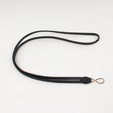 革の帯を巻き込みながら縫う作りのしっかりとしたストラップになります。先端の金具にシリーズの小物を取り付け、ぶら下げられる仕様になります。