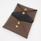 大きな一枚革を贅沢に使い、継ぎ目がなく革を折り折り畳んで成形された、ユニークなデザインのお財布です。