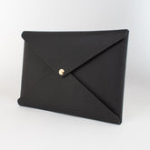封筒型のクラッチバッグ、シンプルなデザインながらも大判一枚の上質レザーをふんだんに使用した贅沢な作りです。