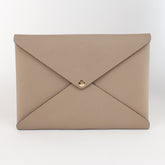 封筒型のクラッチバッグ、シンプルなデザインながらも大判一枚の上質レザーをふんだんに使用した贅沢な作りです。