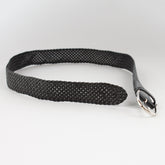 Si tratta di una cintura a rete ultrasottile realizzata in pelle di vitello flessibile che è stata lavorata per essere decisamente sottile e poi tessuta da spago avvolto.
